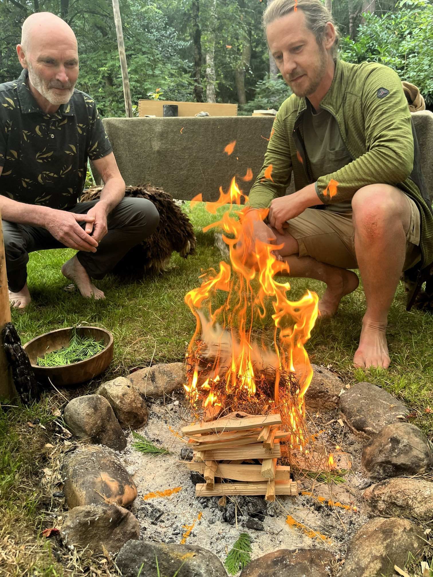 Naast het leren van natuurvaardigheden zoals vuur maken en handvaardigheid, bieden we ruimte voor persoonlijke verdieping. Dit weekend gaat verder dan alleen de praktische aspecten van vuur en ambacht. Het is een kans om dieper in jezelf te duiken, om ruimte te maken voor reflectie, en om je verbinding met de natuur en met anderen te versterken. We verkennen samen de symboliek van vuur en ontdekken hoe dit element kan dienen als bron van energie, inspiratie en zelfontdekking.